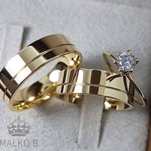 Alianças de Moeda Antiga 6mm reta com friso + Anel Solitario